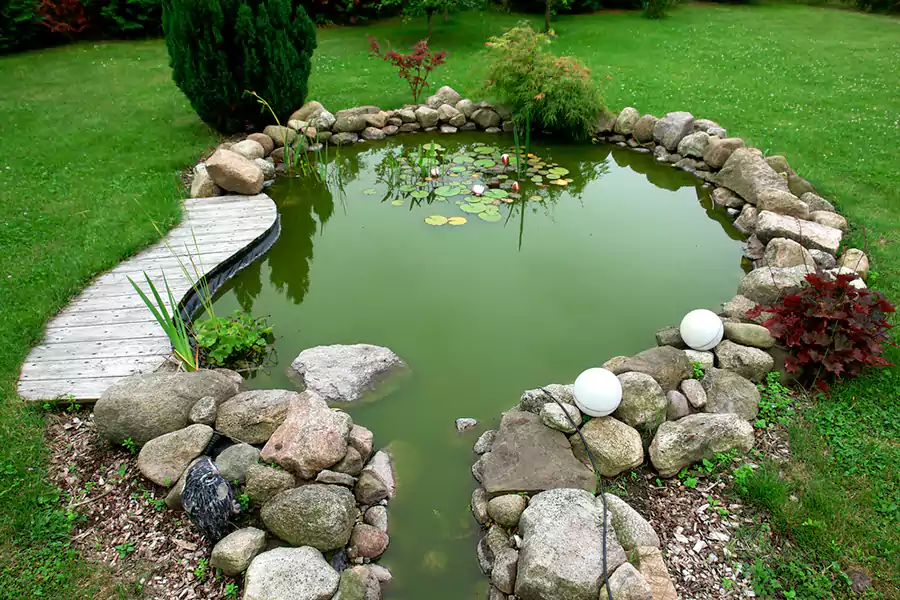 A pond is a gorgeous water feature for your yard, no matter the size. The great thing about a pond is that the size is entirely customizable. You can choose to have a small pond tucked away in a corner of your backyard, or you can have a larger pond and even invite a family of ducks to stop by.